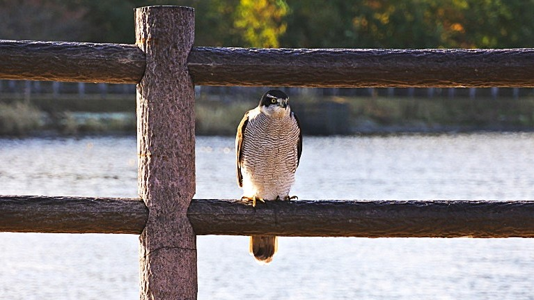 オオタカ 野鳥 2024.11.062024.11.25 11月3日(日)8時頃、間木堤のハクチョウたちの大部分飛がび立った後、遊歩道の柵にオオタカが止まっていました。こんなに近くで見られるのは珍しいです。