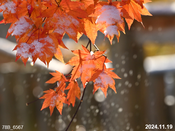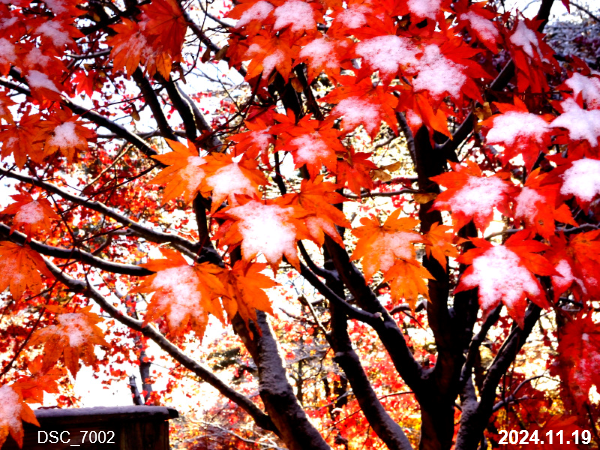 11月19日おいらせ町にも雪が積もりました。下田公園のキャンプ場では見事な雪紅葉が見られました。