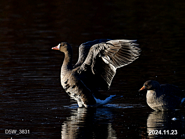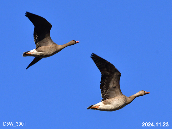 下の写真はマガンですが、幼鳥は顔の白い部分がありません。