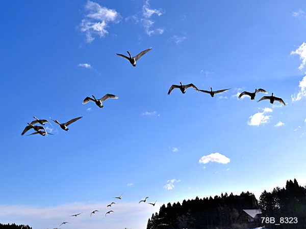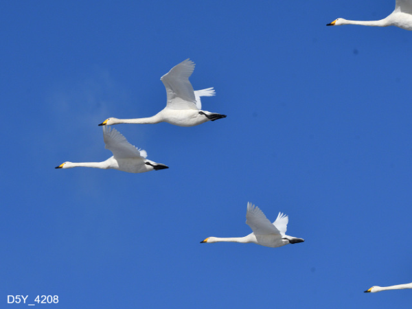 ハクチョウハクチョウの飛来数、今期最高値を530羽に更新しました。昨年の2月4日は561羽、2月5日は623羽でしたので昨年より少ないです。今朝は風が少し強かったのですが気温が上がったせいか、朝8時30頃までには殆ど飛び立って行きました。