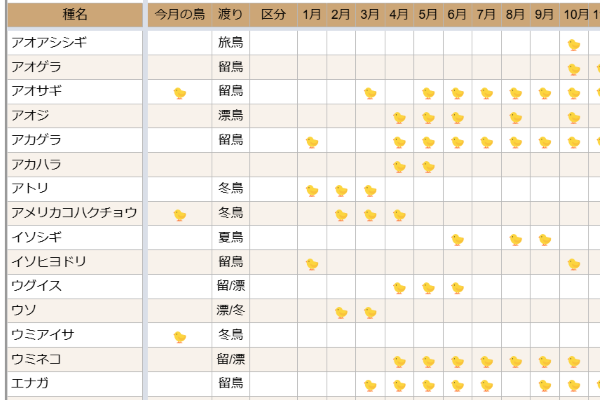 野鳥観察カレンダー