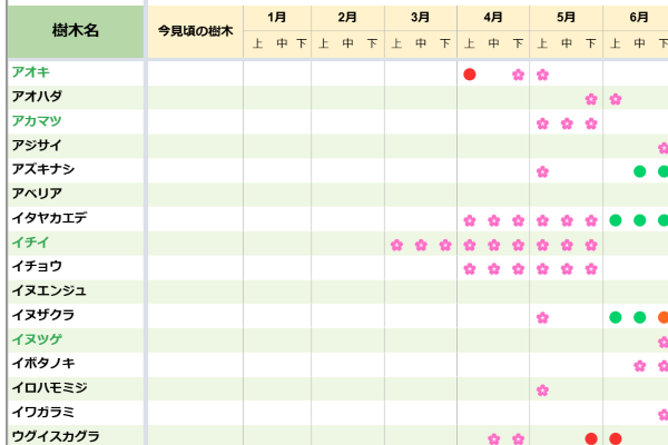 樹木の開花カレンダー