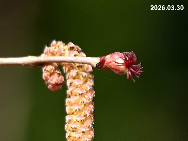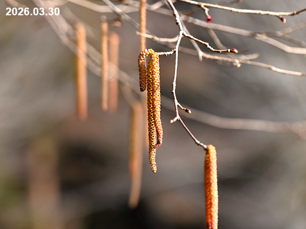 2026年3月30日、下田公園ではツノハシバミの花がたくさん咲いていました。