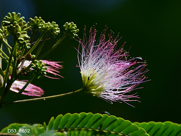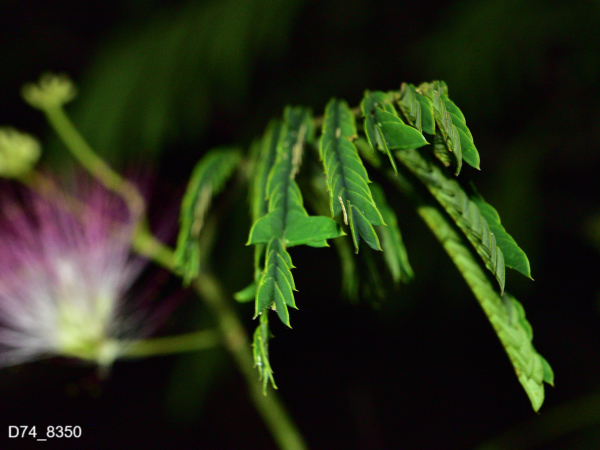 下の写真は、ネムノキの花と、夜に葉が閉じる様子を撮影したものです。