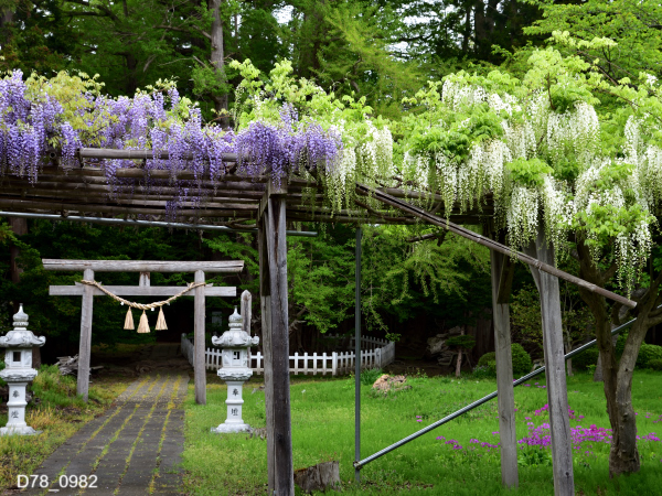 紫と白のフジは根岸の大イチョウへの入り口にあります。