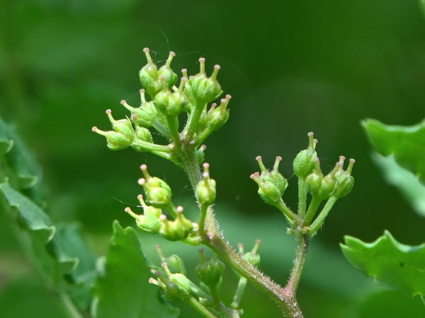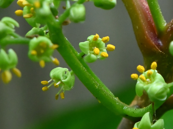 漆塗りの漆を採取するのは「ウルシ」の樹でヤマウルシとは異なります。ヤマウルシはウルシより樹高が低く小葉の数は多めで果実に刺毛が有ります。