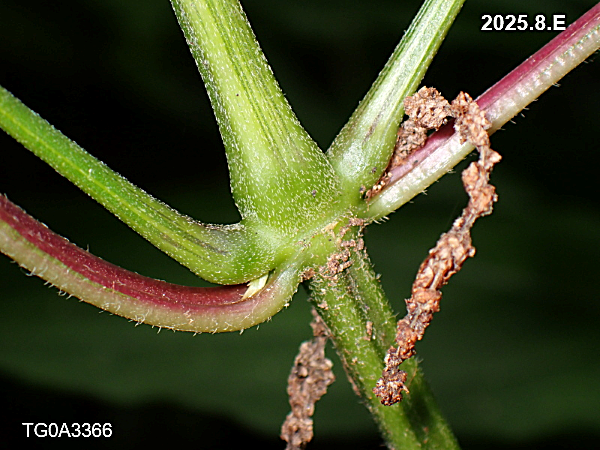 果実の苞葉が外向きに反り返っていて衣服にひっつきます。(「ひっつき虫」)