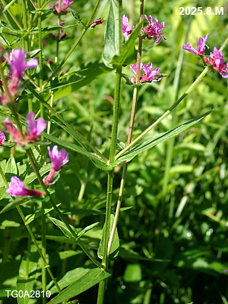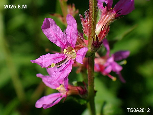 ミソハギと異なり、茎、葉、花序などに短毛が有り、葉の基部が茎を抱きます。
