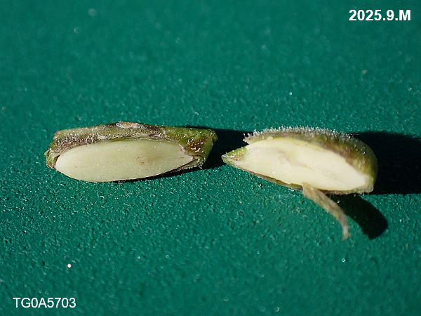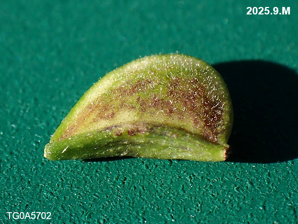 果実は熟すと半分に割れてひっつきます。