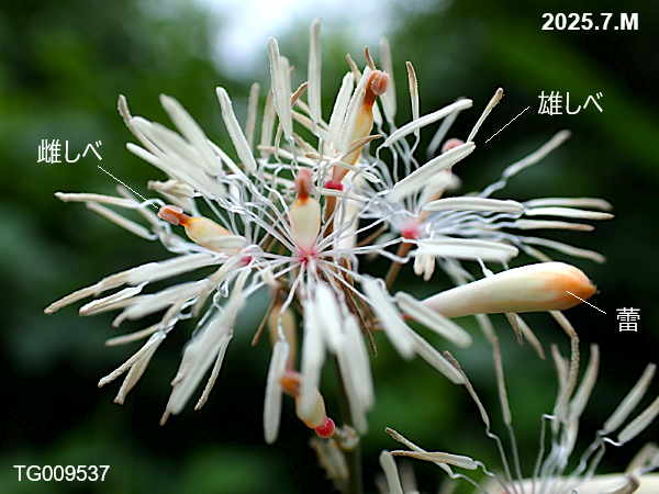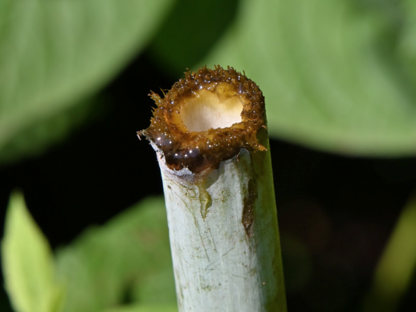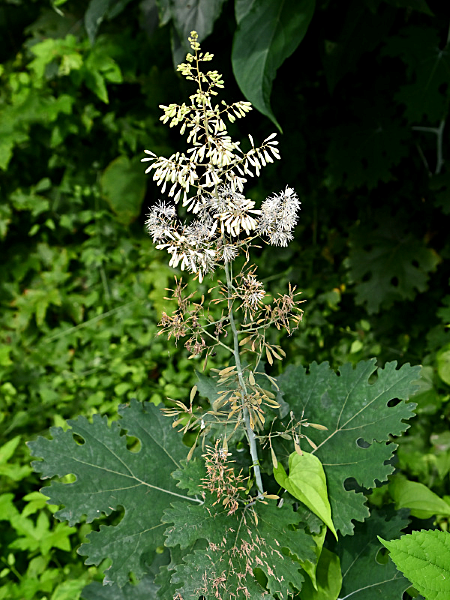 タケニグサ 2025.07.072025.08.18 タケニグサ(竹似草) ケシ科の多年草。草丈が2mを超えることもある大型の野草です。葉や茎を傷つけると出るオレンジ色の汁は有毒で、皮膚に触れると炎症を起こす恐れがあるそうです。 花 花弁は無し 茎 果実 果実 白色の花へ [野草]