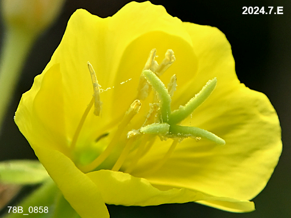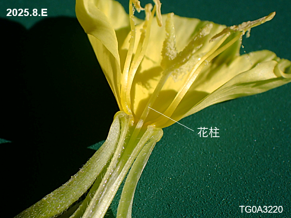 花柱は花托筒を通って子房に繋がっています。(写真はメマツヨイグサ)