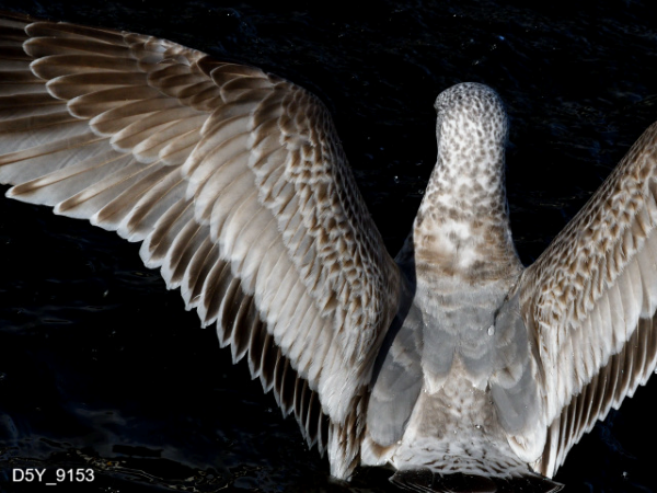幼羽 → 第1回冬羽 → 第2回冬羽 → 第3回冬羽 → 第4回冬羽 → 成鳥冬羽と換羽を行い5年目で成鳥になります。