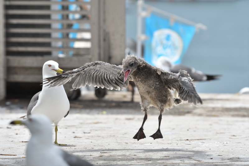 ウミネコ 2025.02.232025.03.05 6月22日羽ばたく練習?翼も大きくなってきました。 6月22日上から下まで真っ白。これはいったい何!? 6月22日今日は参拝者が多いなぁ。 7月8日親鳥と同じくらいに成長しても、まだ餌をねだっています。 7月8日ストレッチ? 7月18日精悍な顔つきになりました。いよいよ旅立ちです。 おしまい 蕪島の案内パンフレットには、ウミネコの2m以内には近づかないよう注意書きがあります。こちらの写真は望遠レンズを使用して離れたところから撮影しています。 チドリ目へ [野鳥] 前へ 123