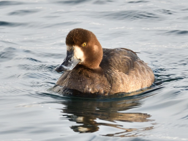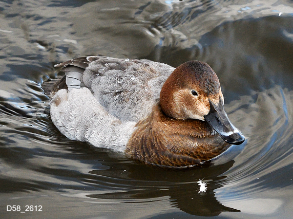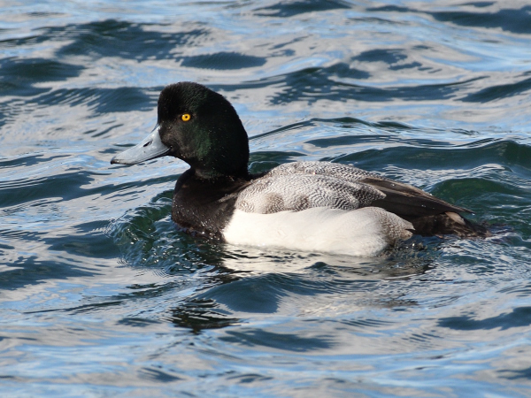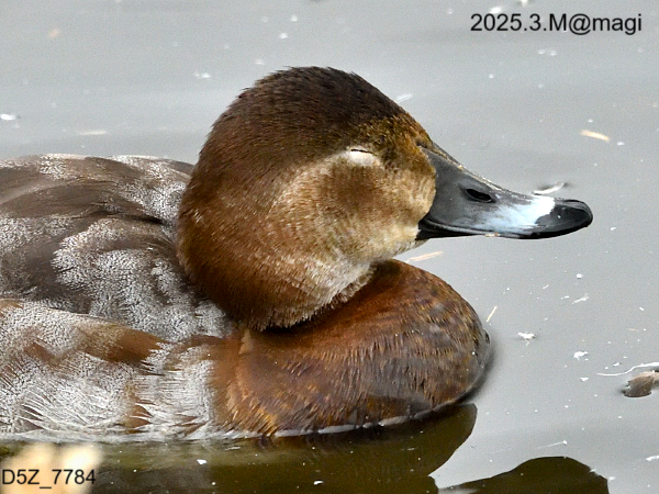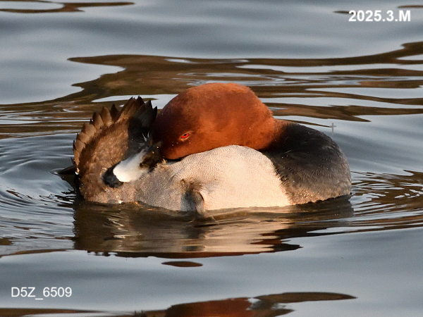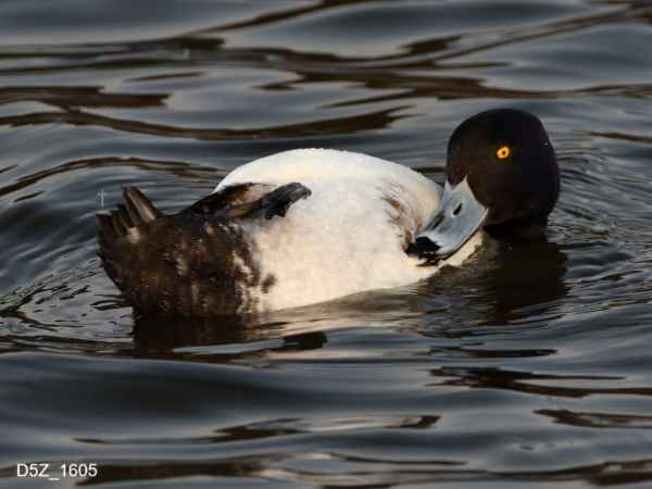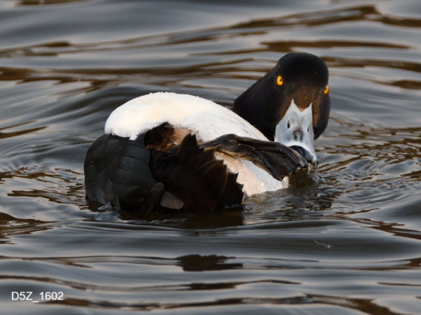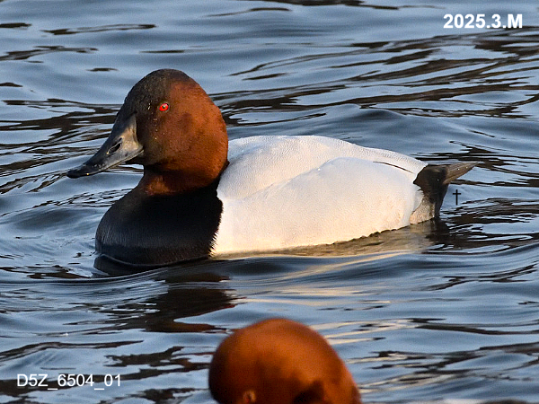 もともと北米に生息しているそうですが、まれに日本にもやって来る個体もいるそうです。写真は間木堤で撮影したオスのオオホシハジロ。ホシハジロと比較して若干大きく羽根の色は白っぽいです。嘴は全体が黒いです。