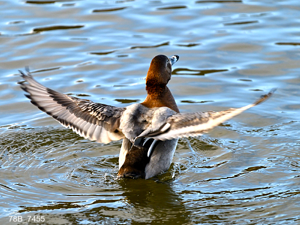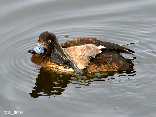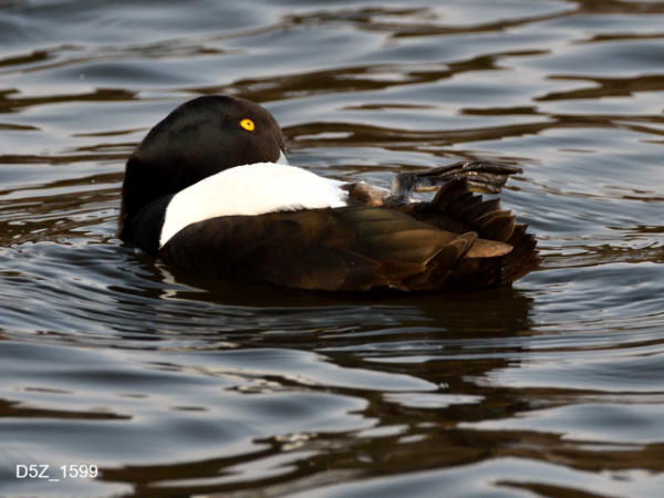キンクロハジロの羽繕い