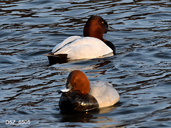 間木堤では、ホシハジロとキンクロハジロが冬によく見られます。