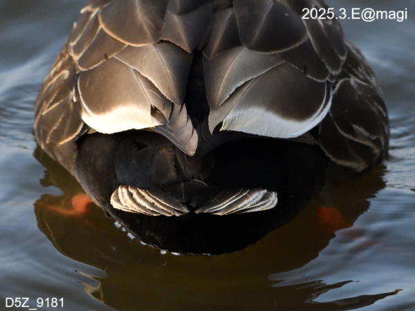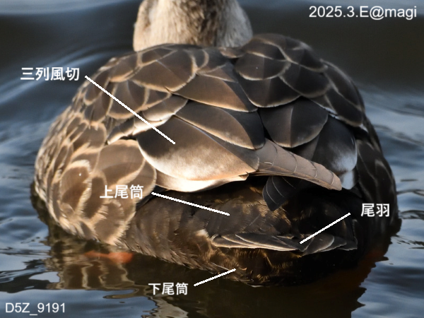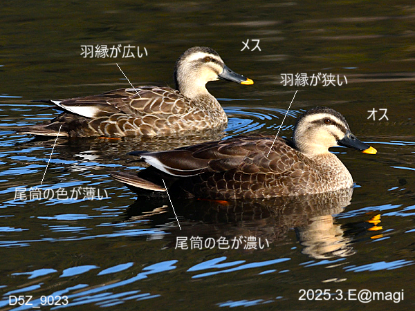 - 肩羽の羽縁の白い部分 ー ♀:広い、 ♂:狭い