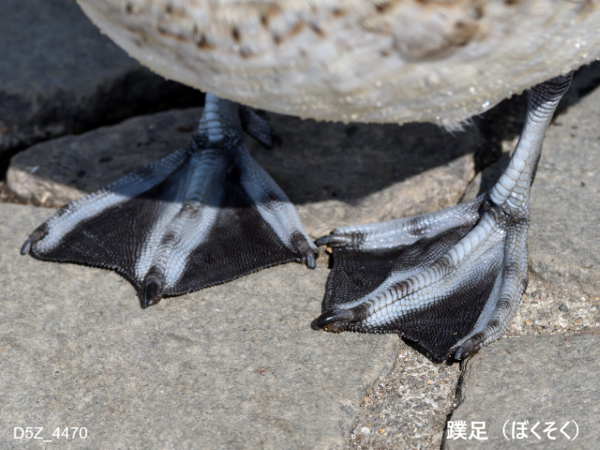 オナガガモの趾(あしゆび)は、2~4趾の間に蹼(みずかき)のある蹼足(ぼくそく)です。
