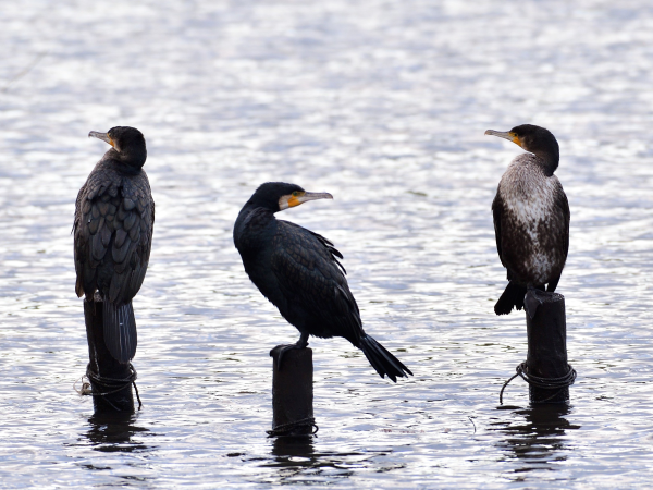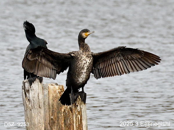 カツオドリ目ほか 2024.11.082025.03.27 カツオドリ目 カワウ カツオドリ目ウ科の留鳥。繁殖期になると頭と腰の部分の羽の色が白くなります。胸の白いのは幼鳥です。(11月下旬の写真の右側) 4月上旬 11月下旬 2月下旬 ウミウ カワウと似ていますが、嘴の基部の黄色い部分が尖っているのが特徴です。カワウもウミウも羽を広げて休んでいるところを見かけますが、羽の撥水能力よりも潜水能力を優先したため羽が濡れやすく、羽を乾かしているのだそうです。ちなみに、長良川鵜飼で使用される鵜はウミウだそうです。 1月中旬 5月上旬 3月下旬 キツツキ目 アオゲラ アカゲラ コゲラ コゲラ コゲラ コゲラ 次へ 123